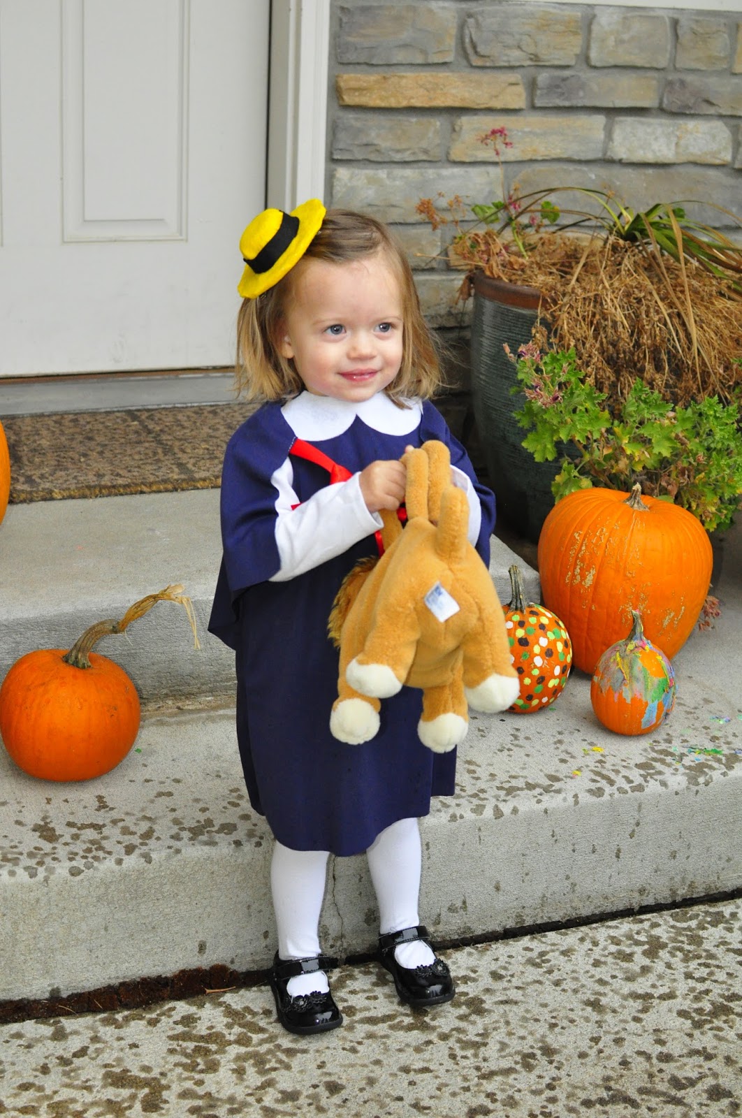 I also made her costume. I sewed the dress, but hot glued everything else because I'm a BOSS. Her hat is a little party hat that I covered in felt and hot glued to a barrette.